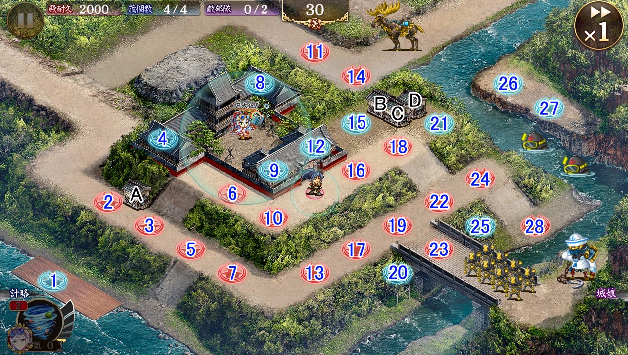 | 今回の合戦の難易度「普通」では、[夏]白帝城が お助け城娘として登場しています。再配置や撤退を行うことはできませんが、 巨大化と計略を駆使して合戦の勝利を目指しましょう。 ※難易度「難しい」ではお助け城娘は登場しません。  |