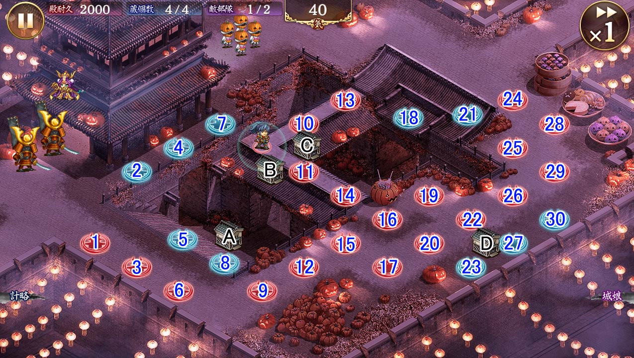 | 今回登場の[ハロウィン]平遥古城は以下の特技・計略の効果を発動しています。 自身の攻撃速度が25%上昇、攻撃後の隙を20%短縮、 攻撃が1.8倍上昇し、2連続攻撃になる。 |