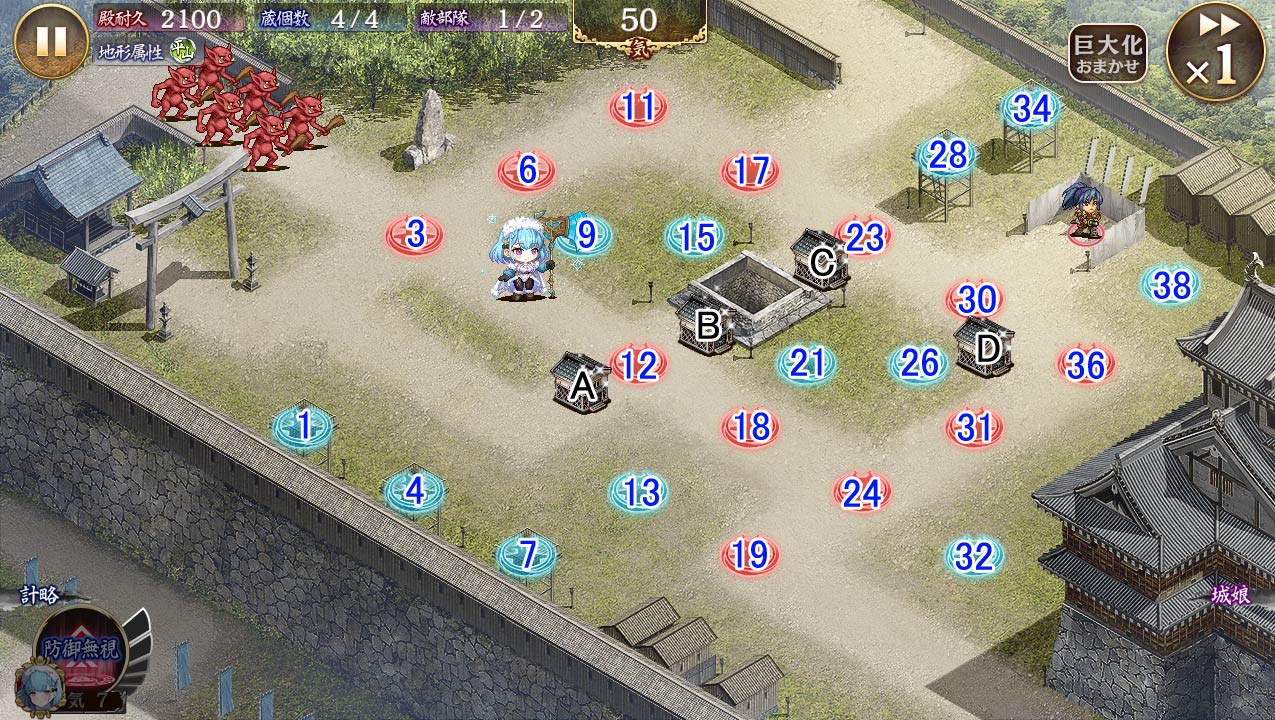 | 今回の合戦の難易度「普通」では、 『【フロストジャイアント娘】ナルケパフネ』がお助けユニットとして登場しています。 再配置や撤退を行うことはできませんが、計略を駆使して勝利を目指しましょう。 |