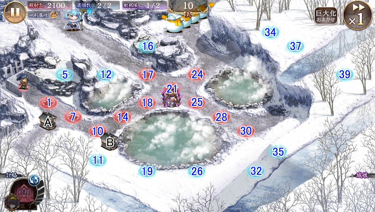 | 今回の合戦の難易度「普通」では、 『刻詠の風水士 リンネ』がお助けユニットとして登場しています。 再配置や撤退を行うことはできませんが、計略を駆使して勝利を目指しましょう。 |