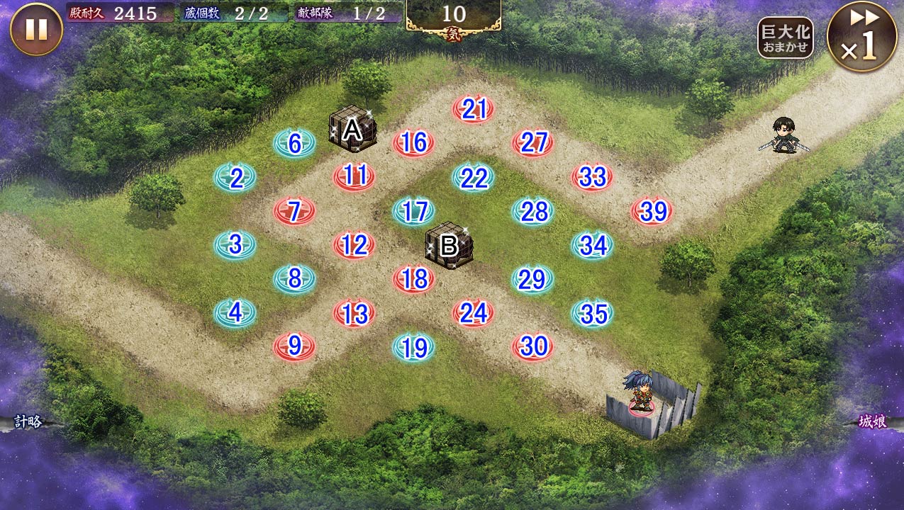 | 『ミカサ・アッカーマン』は 射程内の対象2体に攻撃対象の防御を40%無視する攻撃を行います。 また、射程内の殿側ユニットの防御が30%低下、被ダメージが25%上昇します。 |