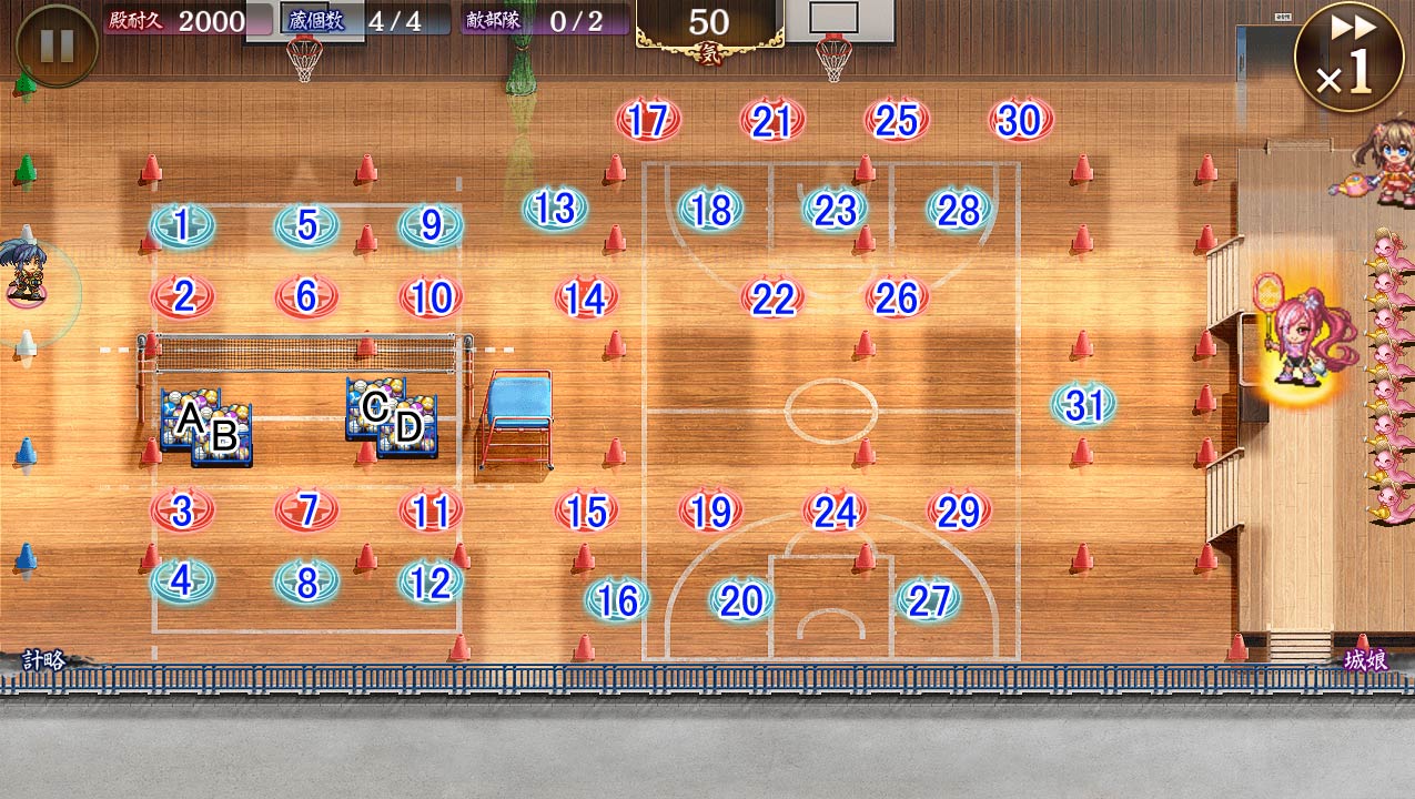 | 今回登場の[学園]城娘たちは以下の特技・計略を発動しています。 [学園]苗木城: 自身の与ダメージが15%、攻撃速度が20%上昇。 [学園]岡城: 射程内の敵軍ユニットが与ダメージの10%の耐久を回復するようになる。 自身が攻撃した敵の攻撃を3秒間25%低下 [学園]聚楽城: 自身の射程が100、攻撃が500、攻撃速度が250%上昇。 攻撃が対象の防御を75%無視。自身の与ダメが1.5倍になる。 全ての敵軍ユニットの射程が25上昇、攻撃後の隙が20%短縮。 [学園]金亀城: 自身の攻撃が30%上昇、砲弾直撃ボーナスが150%に上昇。 爆風範囲が半減。 射程内の敵軍ユニットの与ダメージが25%上昇。 |