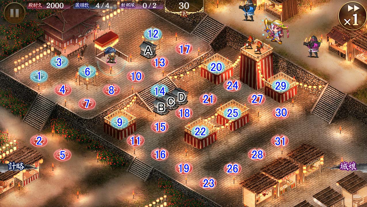 | 今回登場の[夏]聚楽第は自身の特技効果を発揮しています。 特技効果:自身の攻撃後の隙が20%短縮、範囲内の敵の防御が20%低下。 |