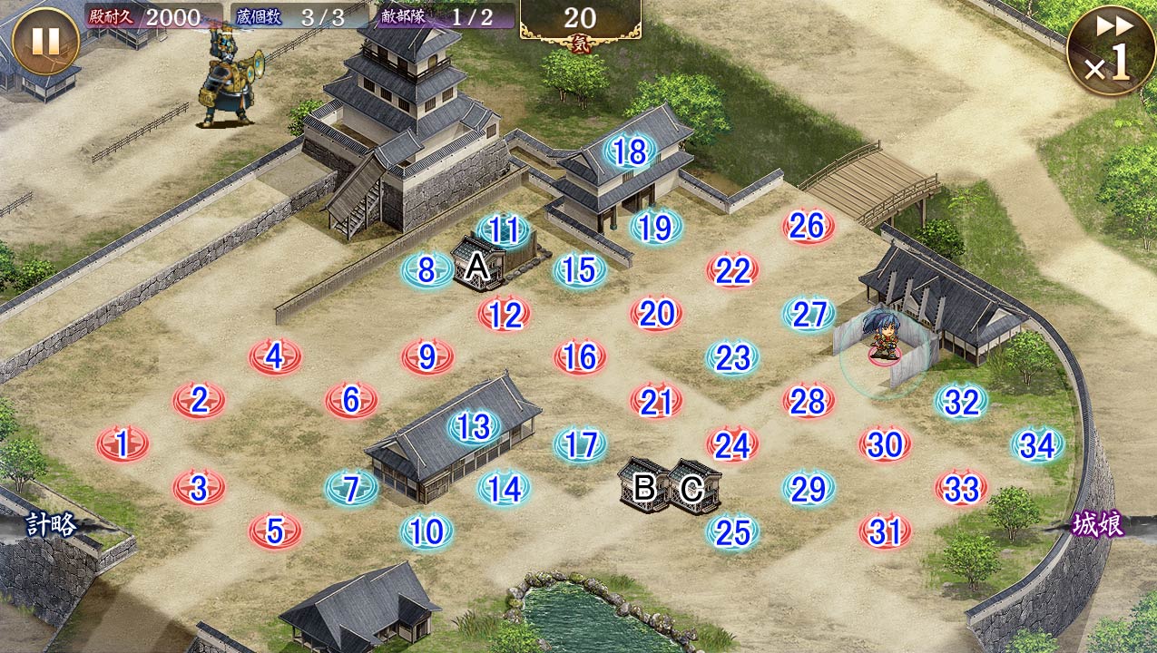 「適当」…本当に☆2とかで良いんだ。猿鏡は良く効くけど赤法術に殴られる。早めに右上を巨大化すれば、小十郎まで保つかな。 --
