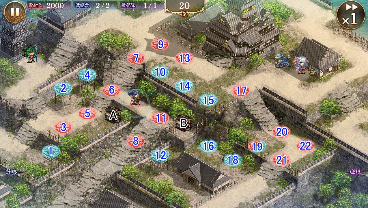 | 今回登場の敵城娘たちは、巨大化を行うまで攻撃対象になりません。 また、北ノ庄城は射程内の殿側ユニットの攻撃が15%低下する特技を発動しています。 |
