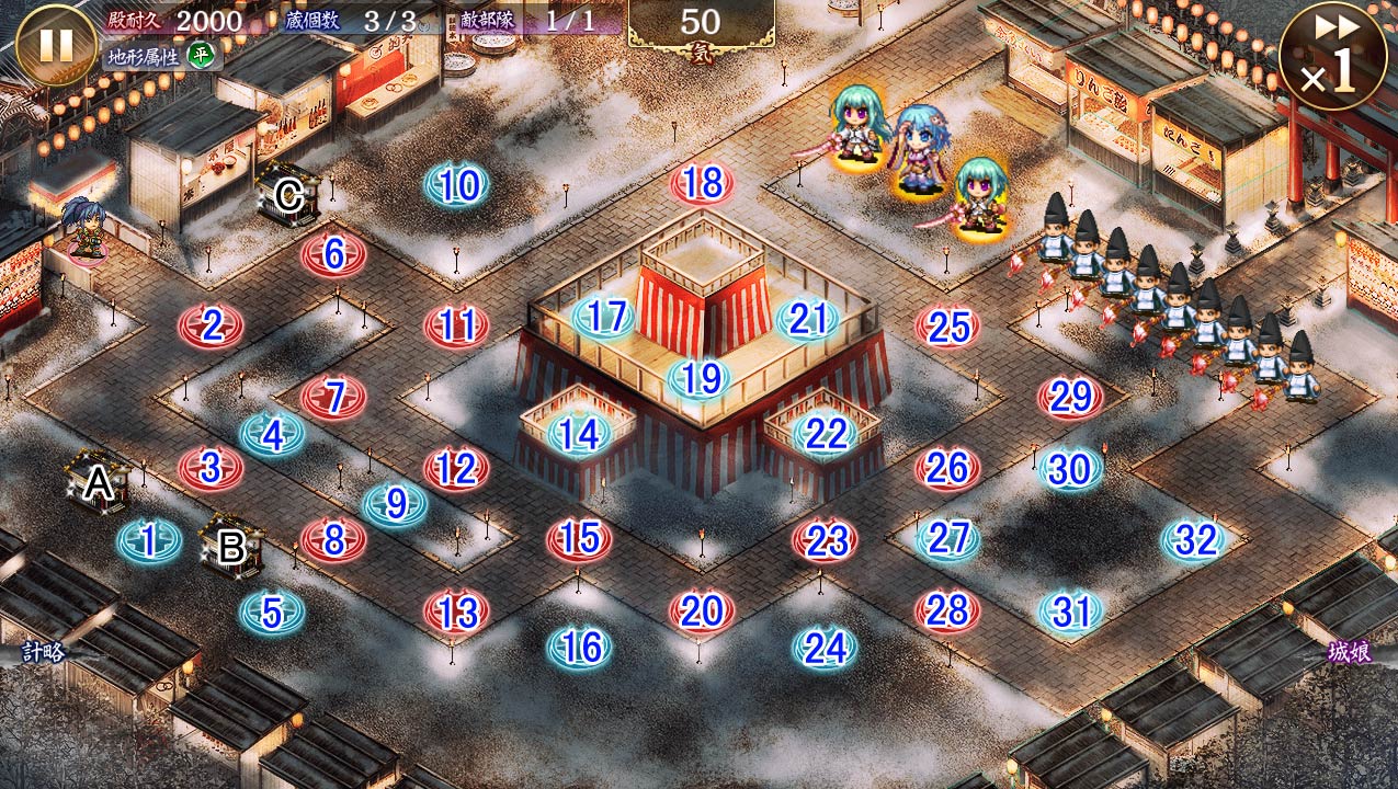 | 今回の合戦では、戦場効果により次の効果が発動しています。 特殊効果『聳える金鯱』 全ての敵軍ユニットの耐久、攻撃、防御が30%上昇。 敵城娘は更に通常攻撃による被ダメージを70%軽減。 |