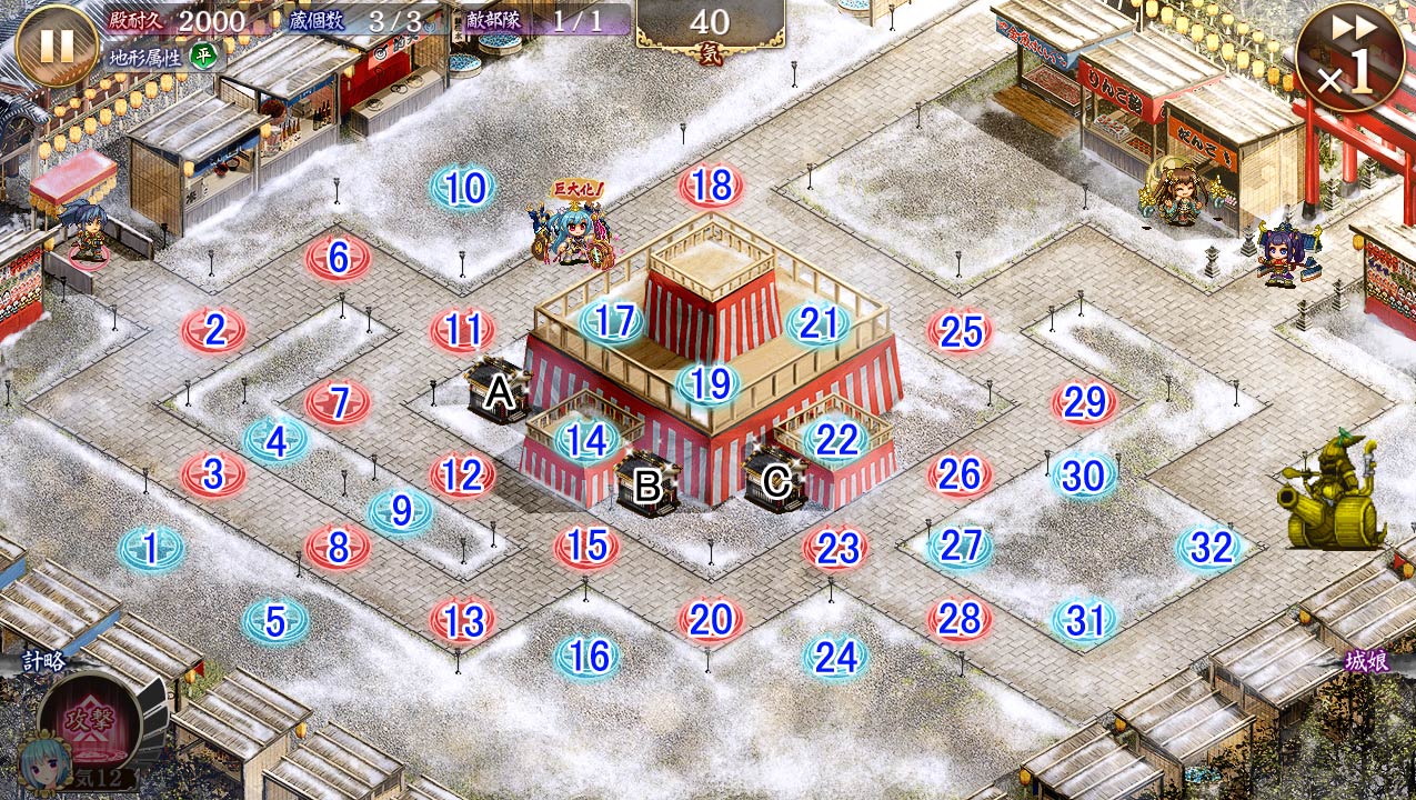 | 今回の合戦では、戦場効果により次の効果が発動しています。 特殊効果『名城の威光』 全ての殿側ユニットの与ダメージが50%低下。 |