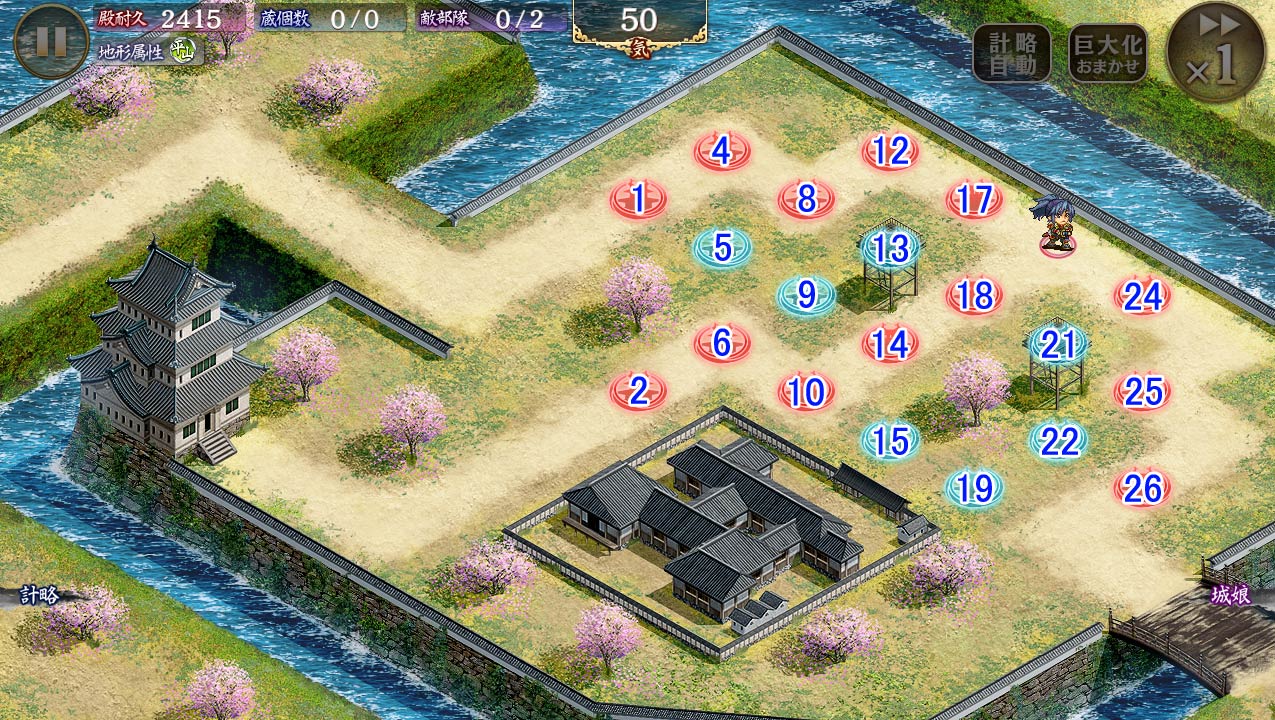 | 今回の合戦では、全ての敵の耐久、攻撃、防御が50%上昇しています。 |