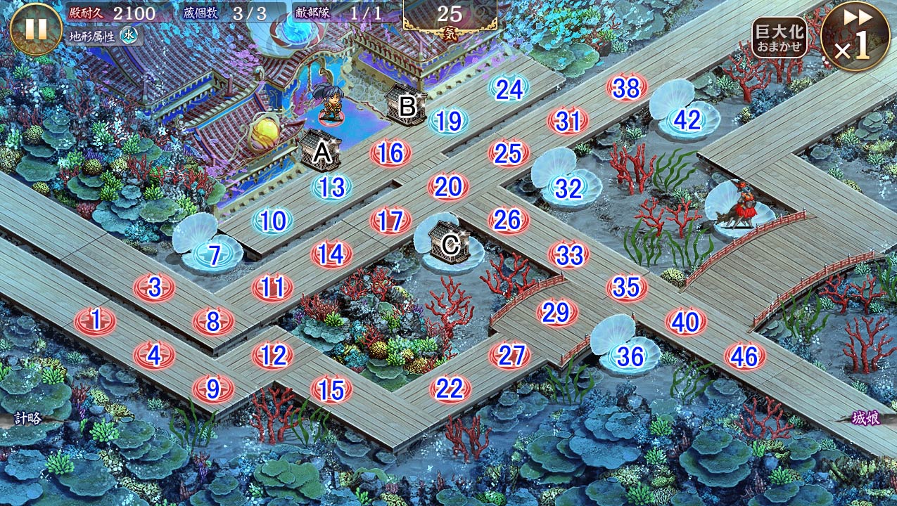 | 今回の合戦では以下の戦場効果が発動しています。 水中行動最適化:海洋兜の移動速度が10%上昇、移動速度低下効果を無効。  |