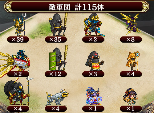 | ?,?,?,?,?,?,?,? | 築城アイテム | [築城アイテム] 17~19個 / 合計136~152個 |