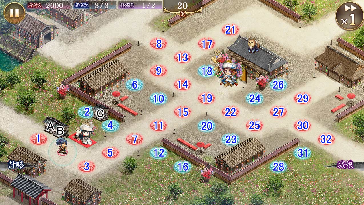| 白無垢衣装の桃型兜は、移動速度の低下や後退効果を受けずに、殿の元に向かいます。 また、道中の城娘や伏兵、蔵には攻撃せず、攻撃範囲に捉えた殿を一撃で倒します。 |