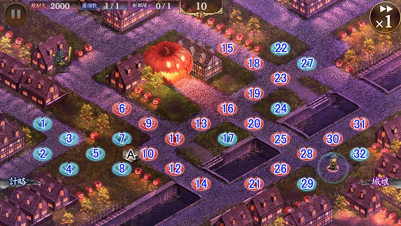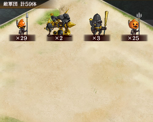 | 今回登場の桃形兜(ハロウィンver)は、ハロウィンverの敵のみを対象に攻撃を10上昇させています。 ※一体ごとに効果は重複します。  |