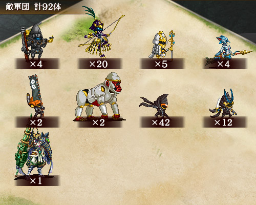 地域地形縛り6体をやろうとして失敗した。足止め2が有るかどうかで難易度が激変するな。足止めとアタッカーを置いたら旗印が来る前に大猿を走らせてしまえば、後は楽。 --
