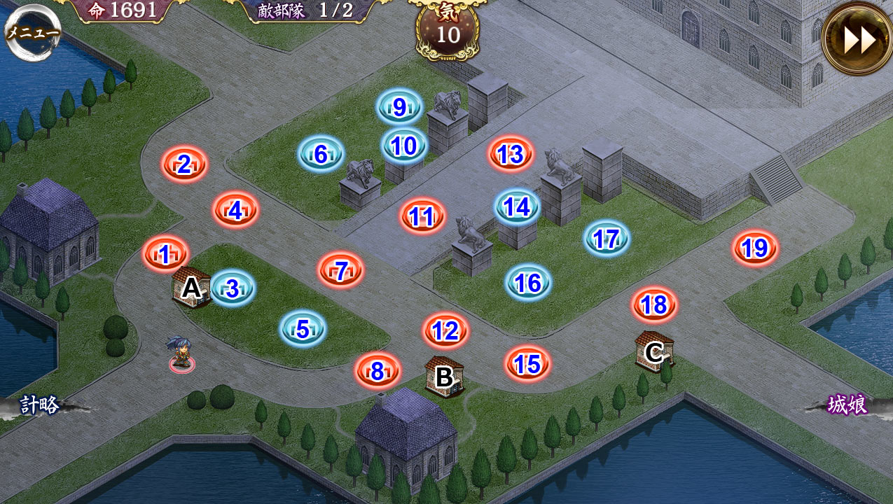 3に大砲、5に小牧山。だけでもシュテファン倒すだけなら楽だった(小並感)1、鹿野、14備中松山、3、宇和島、5小牧山、16神社トークン、10に婆様。後は宇和島巨大化と計略で一掃、18に刀か槍置いて。牛トークンは宇和島が倒すので遠距離2や11お勧め。余ったら小牧山最大で宇和島の攻撃を早く出す。 --