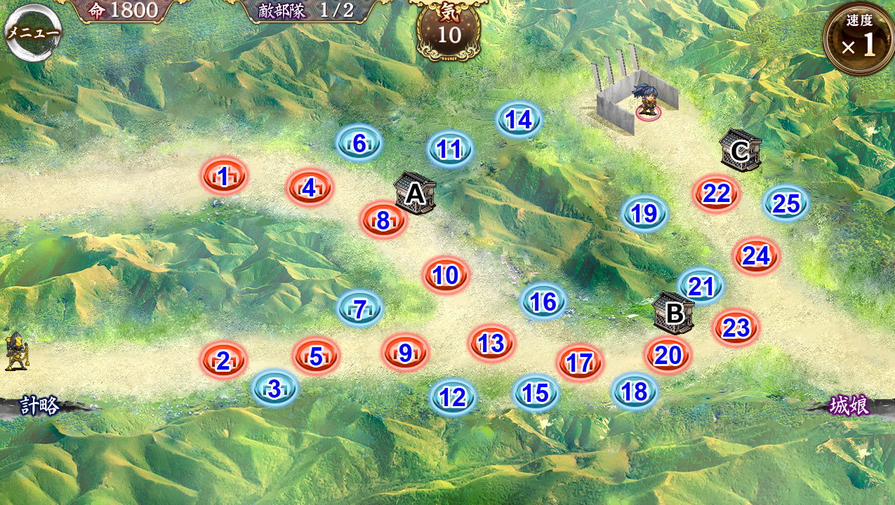 敵は左側からしか出てこないため、守る必要がある蔵はA蔵だけ。片倉は左下の道から登場するけど脆い。 --