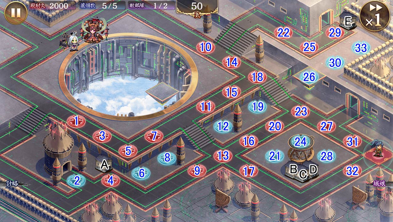 緊急出兵:選ばれし城娘と秘伝武具 漆の陣 | E-1 | E-2 | E-3 | 絶壱 | E-4 | E-5 | 絶弐 |