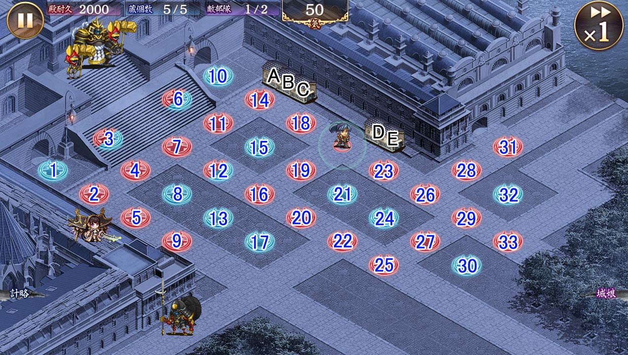 緊急出兵:選ばれし城娘と秘伝武具 陸の陣 | E-1 | E-2 | E-3 | 絶壱 | E-4 | E-5 | 絶弐 |