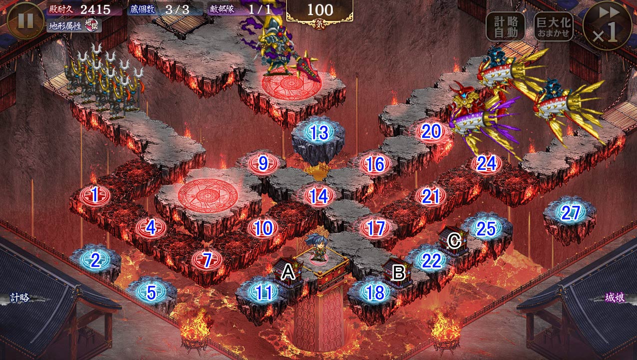 | 2 | 焦熱地獄(大) | 一定時間毎に現在耐久10%分の継続ダメージ発生 対象:城娘/伏兵 |