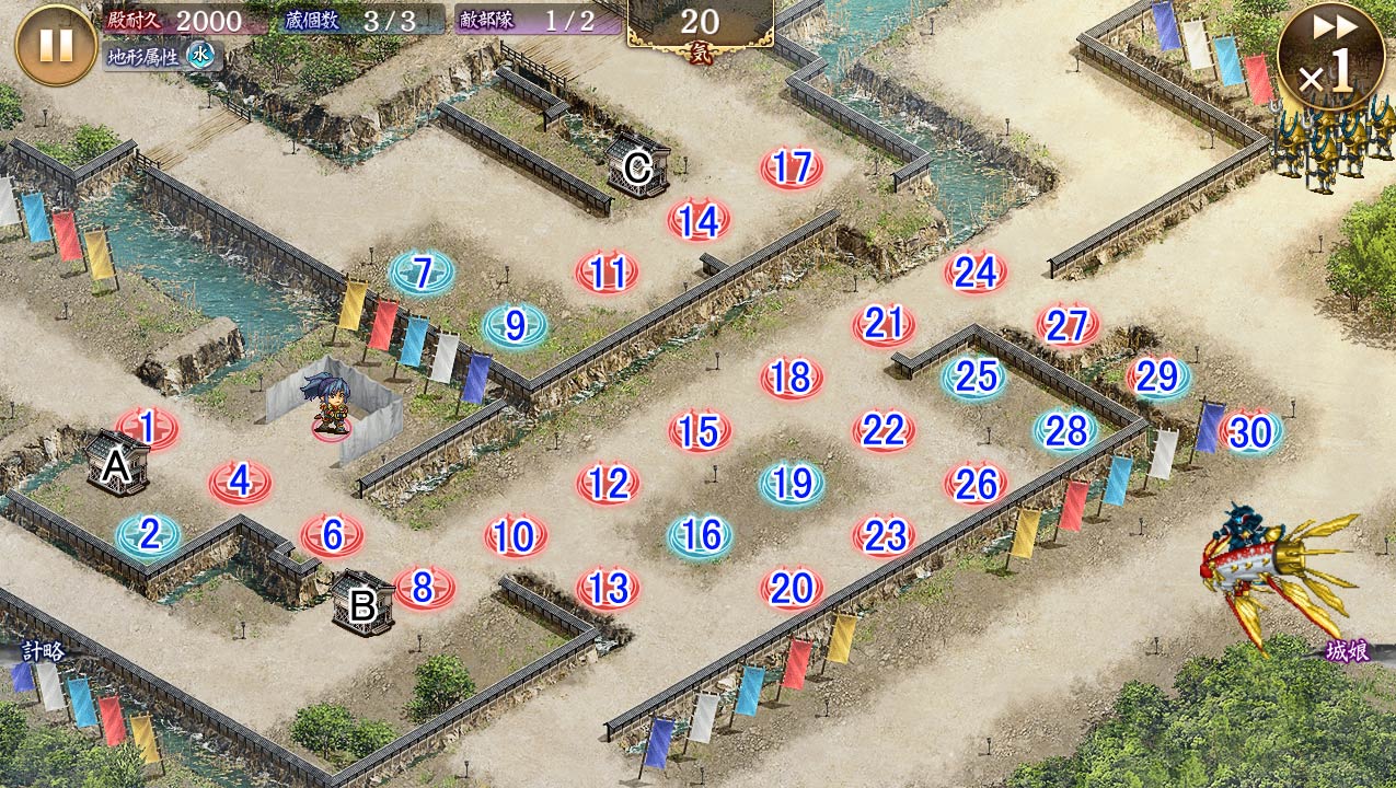 | 今回登場の白鷺城は、特技効果により 自身の射程内の殿側ユニットの被ダメージが30%増加し、攻撃対象が1増加します。 また、攻撃対象の防御を64%無視する攻撃を行います。 |