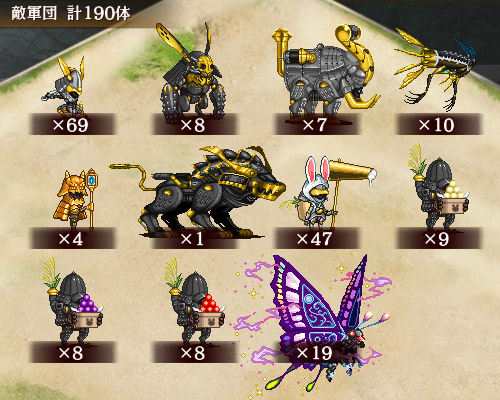 | 巨大な大蝶形兜(幻想種)は、全ての飛行兜の攻撃を25%上昇します。 また、攻撃が攻撃対象とその周囲にダメージを与え、攻撃対象へのダメージが増加します。 |