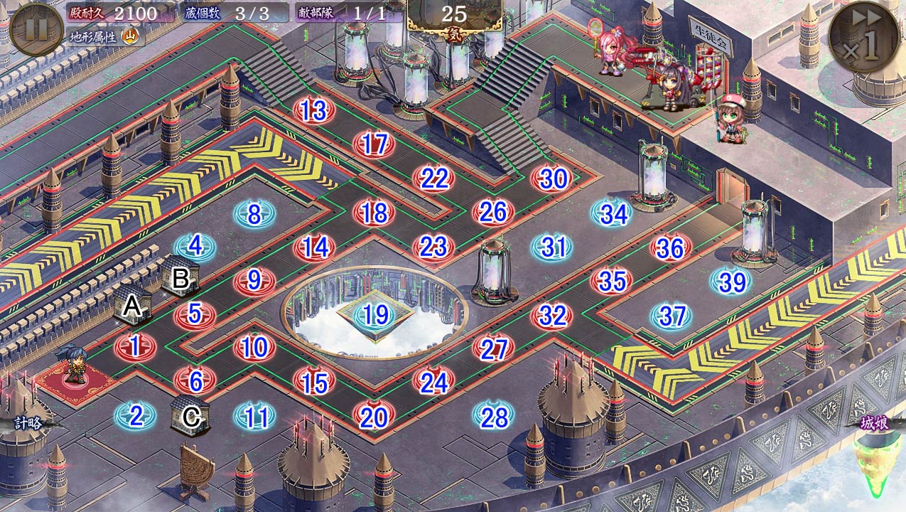 | 今回の合戦では、以下の戦場効果が発動しています。 先見の明:殿側の[学園]城娘の射程が15%上昇。 |