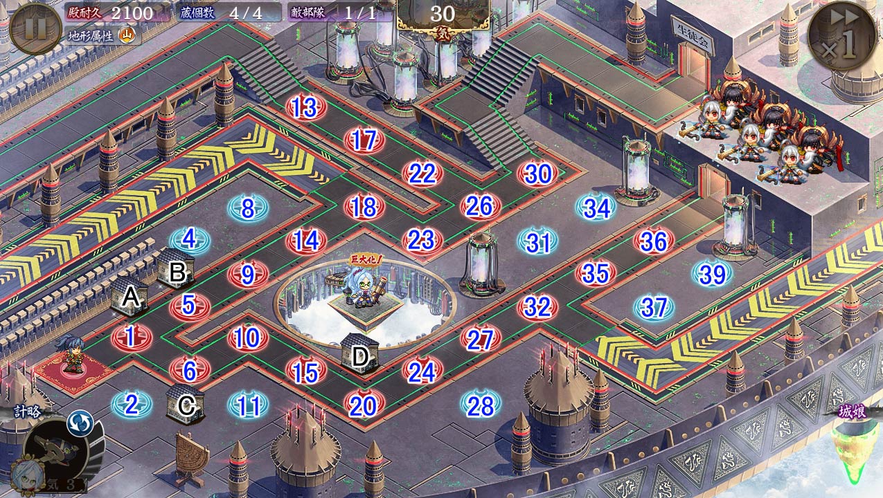 | 今回の合戦の難易度「普通」では、 『[学園]ラピュータ』がお助け城娘として登場しています。 再配置や撤退を行うことはできませんが、巨大化と計略を駆使して勝利を目指しましょう。 |