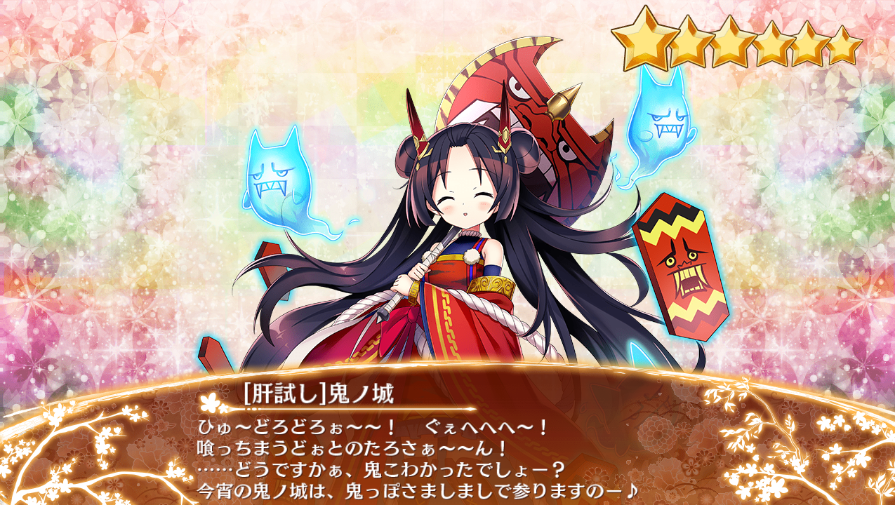 | 1 | [肝試し]鬼ノ城の伏兵 配置時の耐久力 | 0 | 381 | 100 | 0 | 塞ぎの鬼札 敵2体を足止めし [肝試し]鬼ノ城の攻撃を80上昇 |
