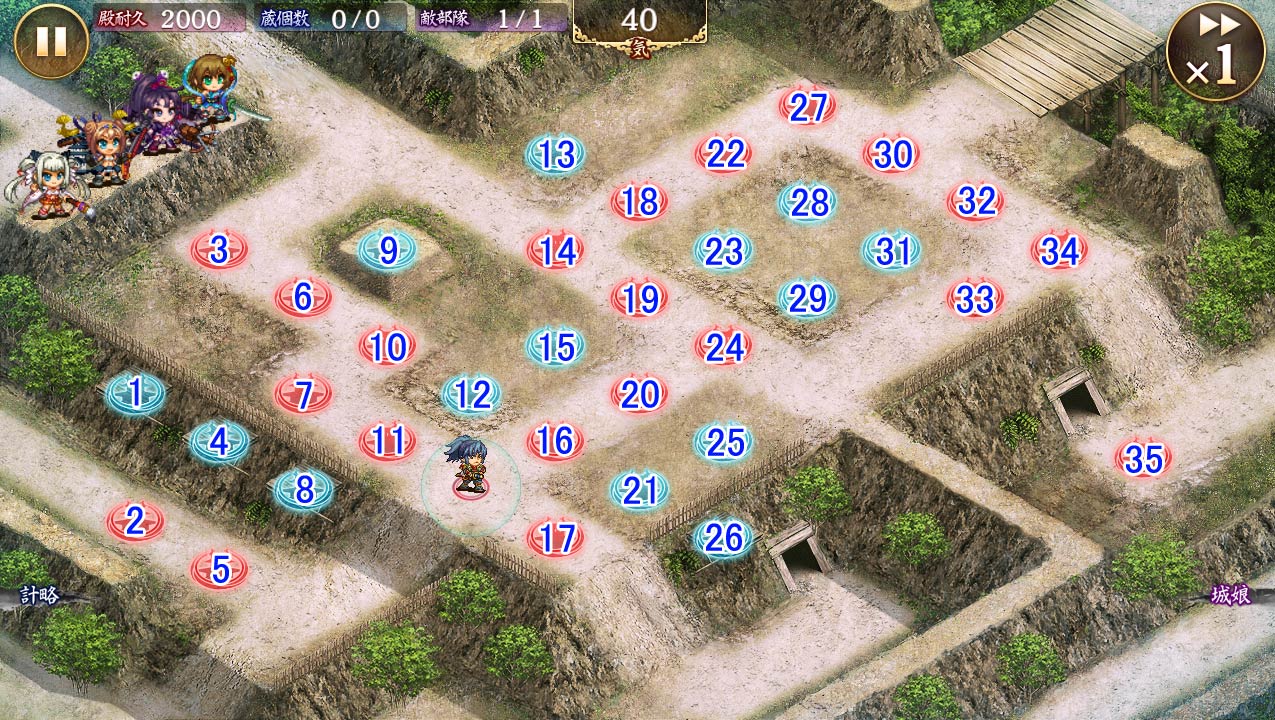 | 今回登場の新田金山城と川越城は攻撃を行いません。 また、以下の特技効果を発動しています。 新田金山城:射程内の殿側ユニットの与ダメージが16%低下、被ダメージが16%増加。 川越城:射程内の殿側ユニットの攻撃が80低下、攻撃後の隙が20%延長。  |