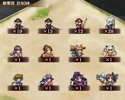 | 今回登場の新田金山城と川越城は攻撃を行いません。 また、以下の特技効果を発動しています。 新田金山城:射程内の殿側ユニットの与ダメージが16%低下、被ダメージが16%増加。 川越城:射程内の殿側ユニットの攻撃が80低下、攻撃後の隙が20%延長。 |