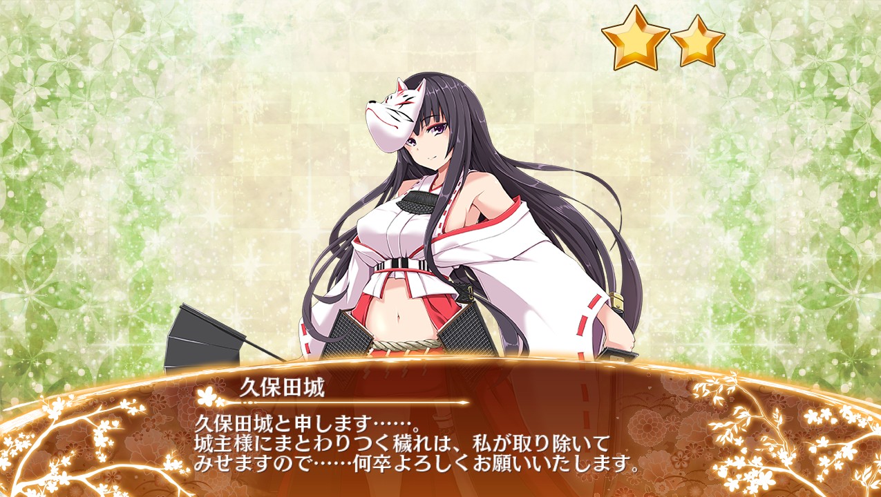 ちなみに、旧城プロでは久保田城が初期装備をしている「日の丸扇」が攻撃速度を上昇させる優秀な武器であったため、久保田城を量産する殿が続出した。