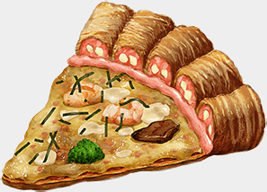 コラボ経験値ユニットだが、これまでの物とは異なり、イベント異界門と囚われの騎士で入手できたピザの材料を使った特殊築城で入手。