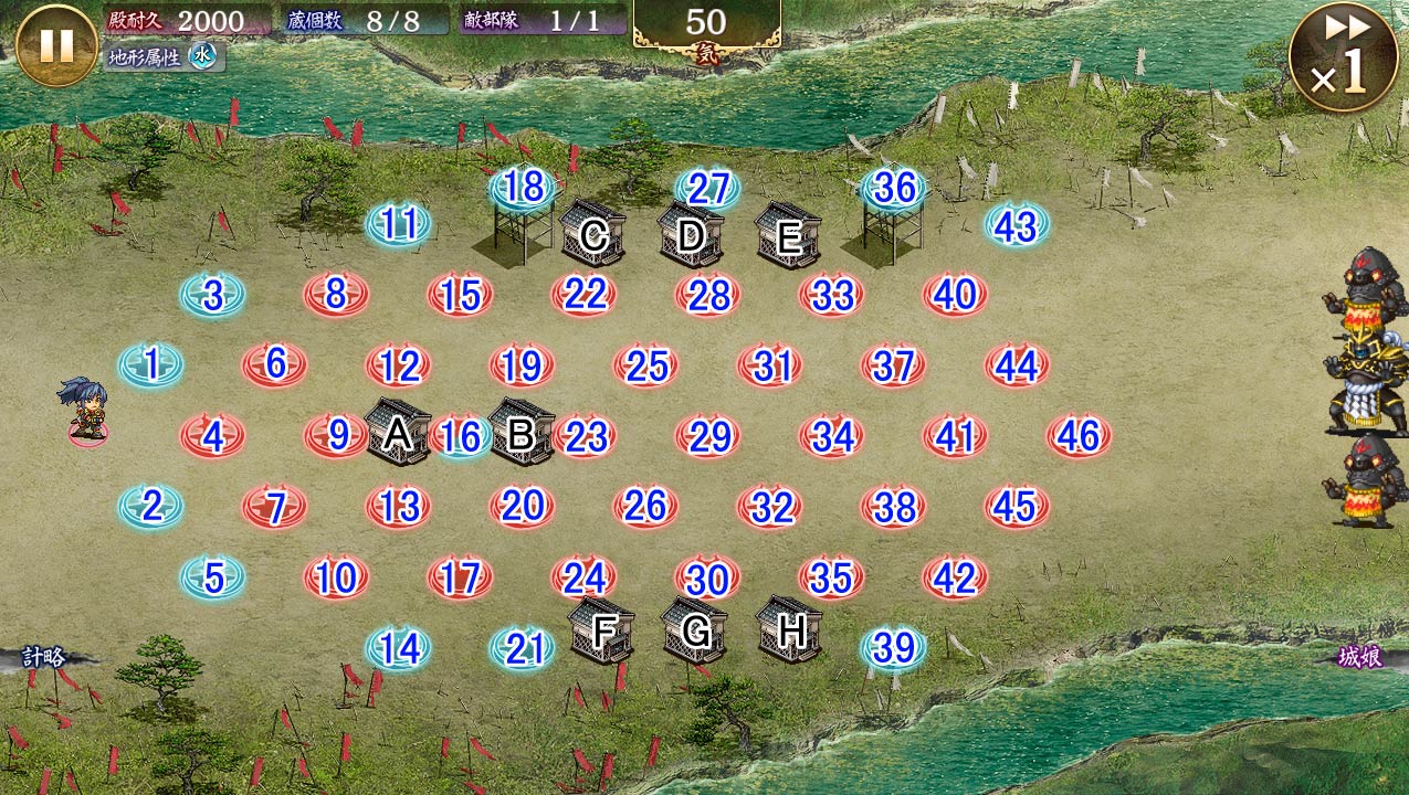 おまけに法術では福島城のような範囲強化持ちを最大強化しないと象鼻形兜に届かず(鈴なら3回目あたりで射程内になる)…と"烈"の名にふさわしい強烈な構造になっている。