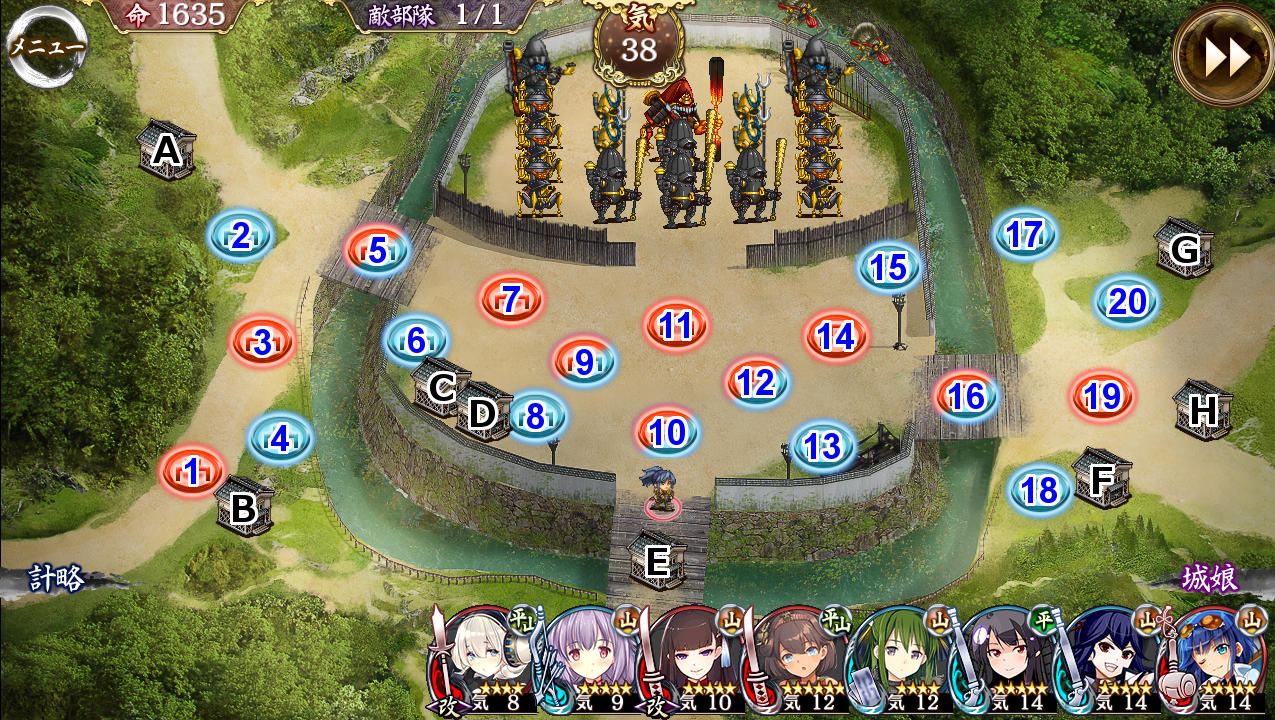 配置が的確なら出撃枠が余るので、育成したい低レベル城娘を連れて行くのもいいかもしれない。