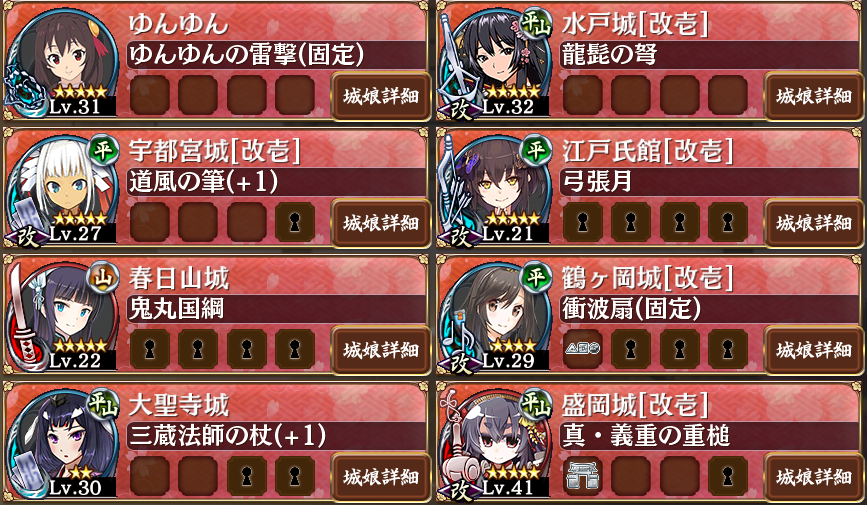 橋左で鈴を最大化させます。大和郡山城ちゃんに浜松計略掛けます。適当に兜の進路上に城娘を置きます。終わり。 --
