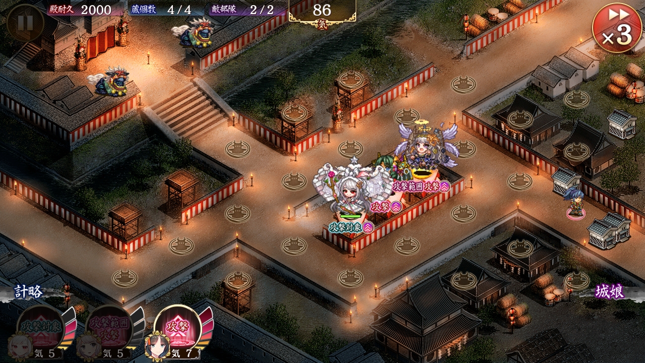 モンサンがいるかどうかで難易度が変わる印象。攻撃・範囲100増える計略のおかげで五稜郭を含めた敵を早めに処理できる。江戸の計略でもいいけど、広範囲は正義 --