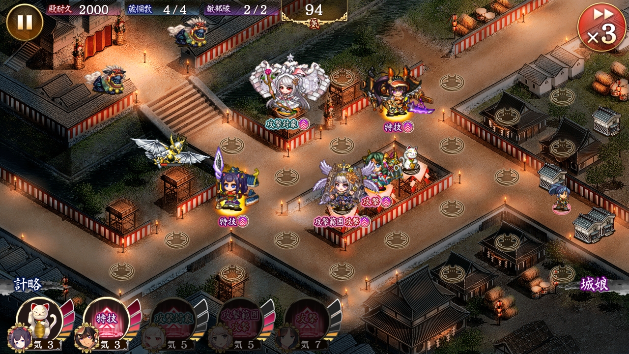 淀に頼りの攻略。4に淀を置いて正月勢の攻撃を全て受けてもらって難クリア。メイン火力は助っ人の[正月]小田原、淀の回復役として11に白石。そしてプレイしてて同じように淀に頼り切ってクリアした当時の討伐武将大兜!北条氏康 絶を思い出した。 --