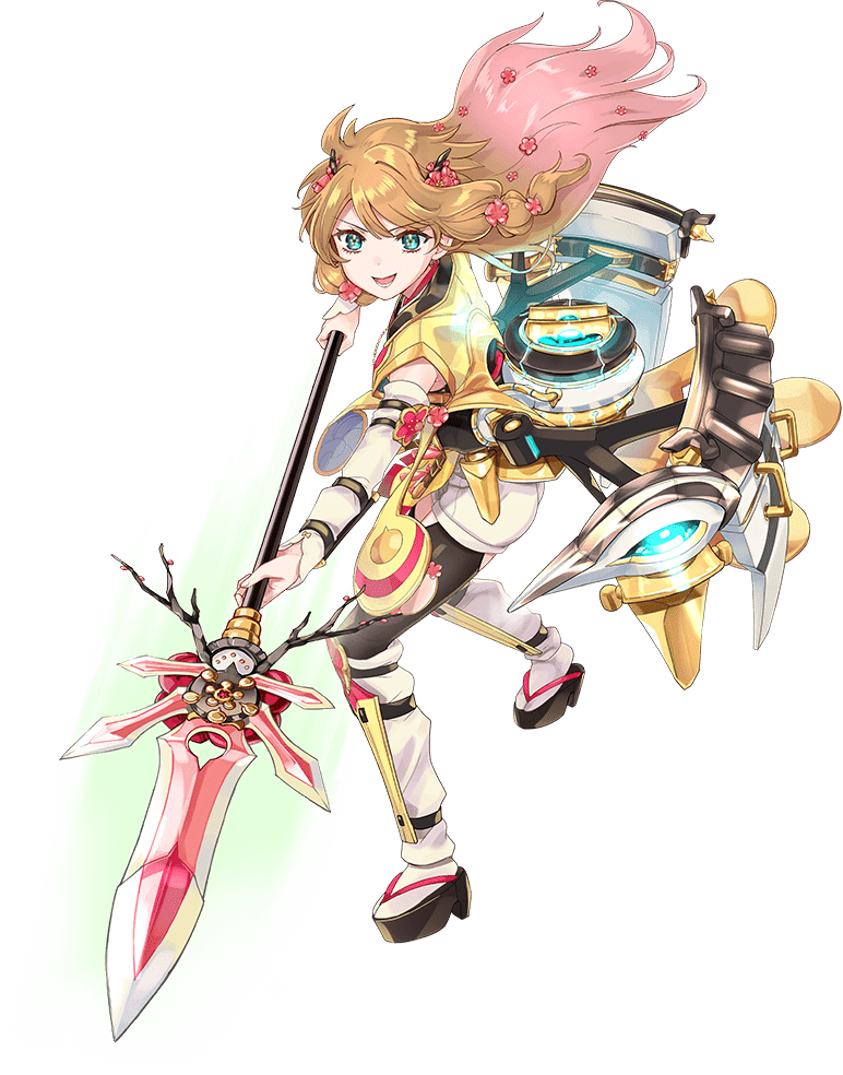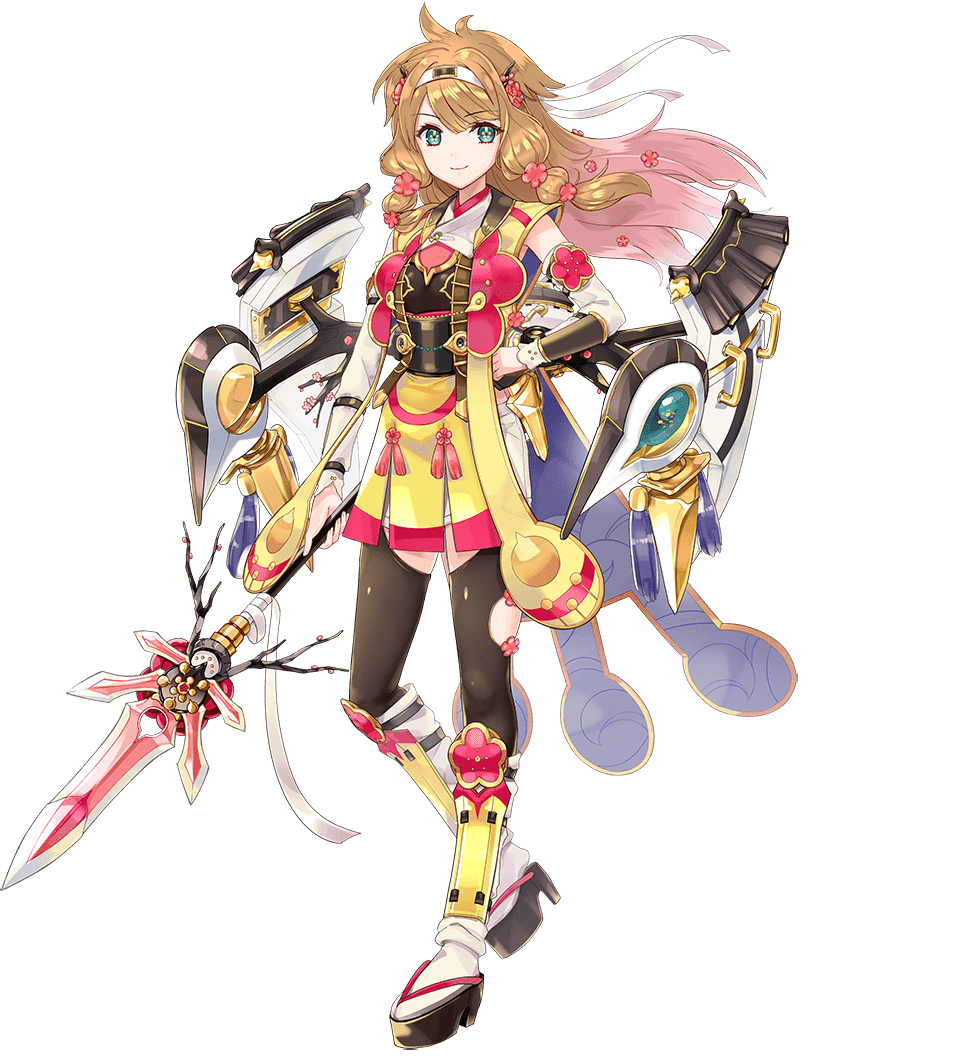 現在、小丸山城跡は小丸山公園として整備され桜の名所となっていることから、槍、防具、髪飾り、ピンクの後ろ髪などにこれらがデザインに取り入れられている。