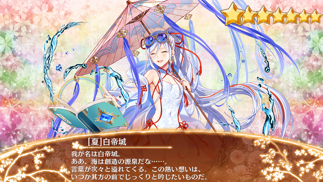 肌を露出する格好は滅多にしないであろう白帝城が水着を着ることで、この詩を想起したのだろう。