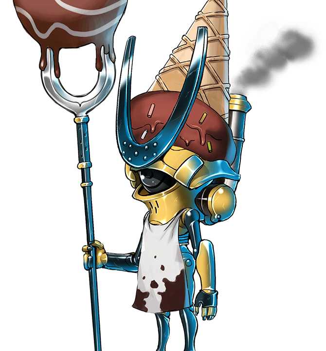 頭の上に握りこぶしと金剛杵があるアレですね(笑)、見た目のインパクトは変わり兜の中でも随一ですよね。出るとしたら…人型の範囲攻撃でしょうか。 --