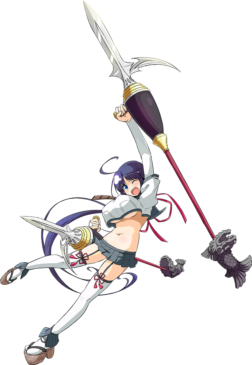 両手の武器の上端には、一対の鯱がデザインされており、槍形天守と呼んでいる事から、彼女は天守自体を武器にしているのだろう。