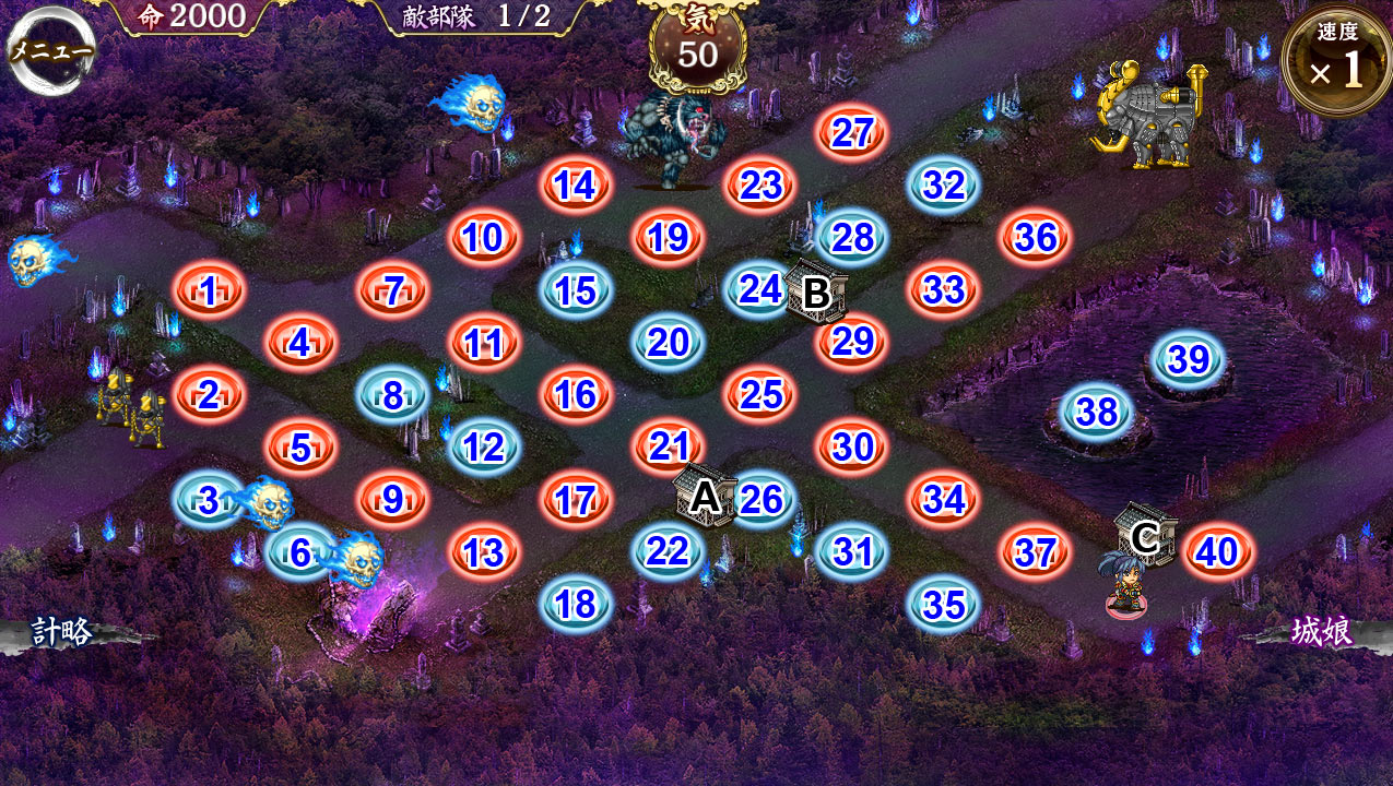 1年前のマップとあって特に今やって難しい要素はなく牛鬼のような厄介な敵もいないので素直なマップ。20に歌舞をいてあとは流れで --
