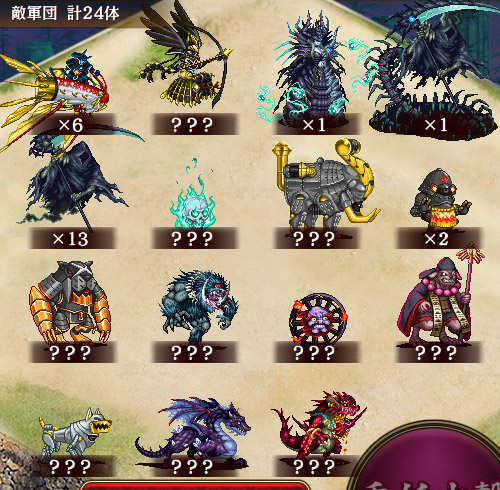 | <死者の祭壇について> この合戦では『ヘルの死神』が行動を開始するまで、祭壇から敵が登場し続けます。 祭壇から登場した敵は回復が付与されている代わりに、攻撃時の獲得気が3になります。  |