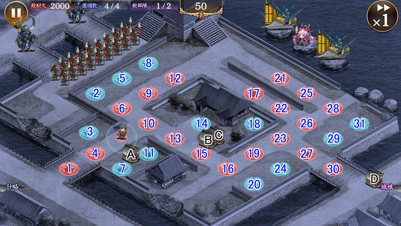 | 今回登場の江尻城は以下の特技、計略の効果を発動しています。 自身の攻撃速度が27%、範囲攻撃の範囲が15%上昇。 さらに2連続で攻撃を行う。 |