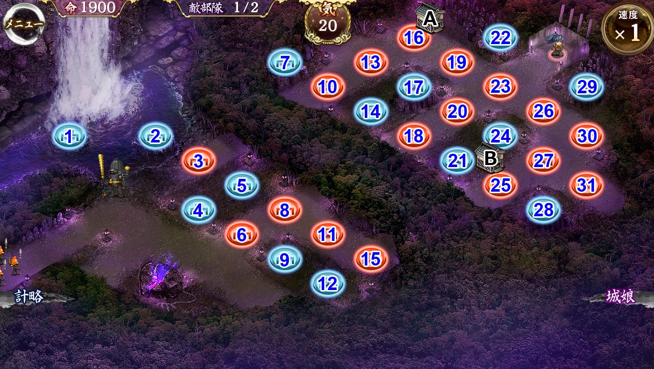 14,21,22札か杖 17,24歌舞 16,23,25近接。A蔵側の歌舞、法、杖とB蔵横の近接を最大化優先。24は遠距離でもいいかもしれない。 --