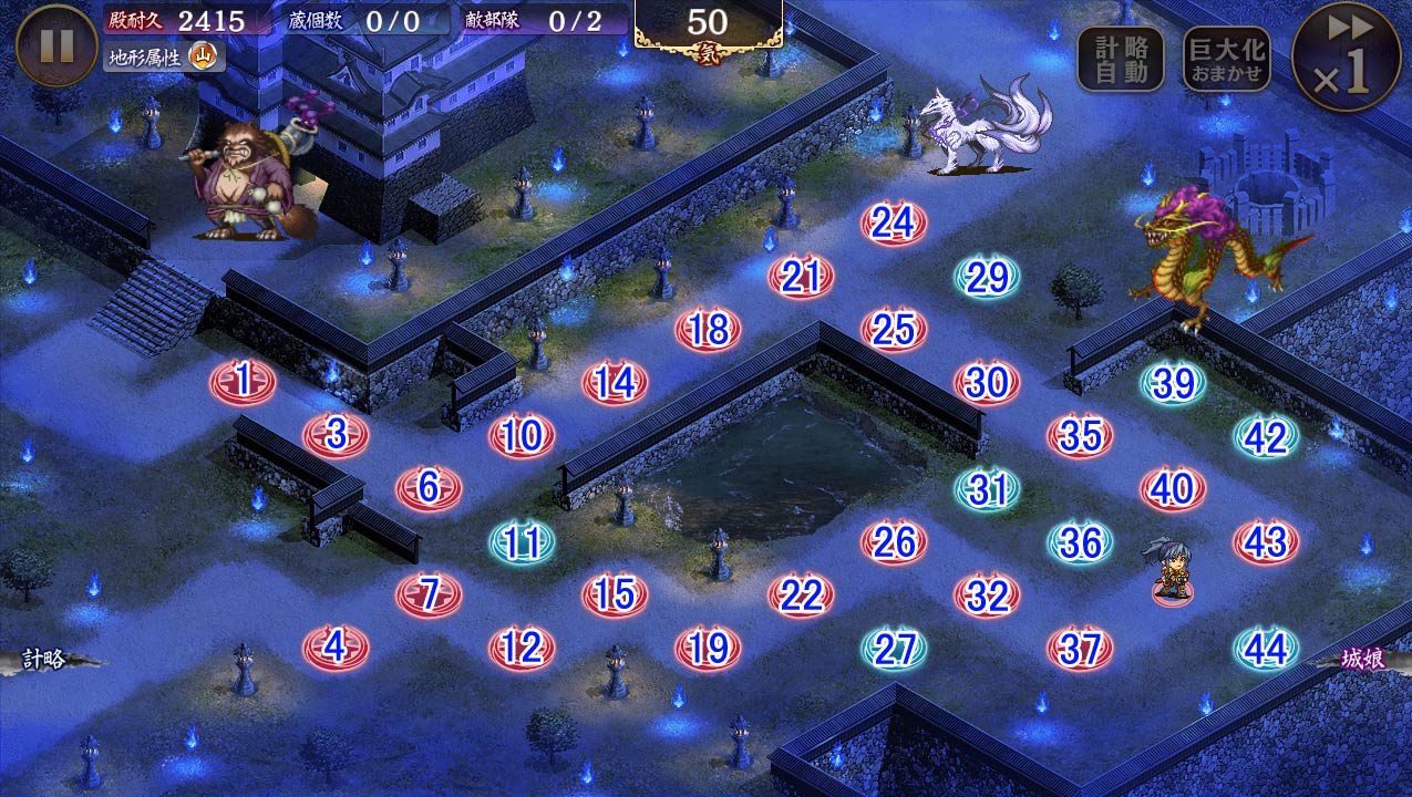 | 今回の合戦では、全ての敵の耐久、攻撃、防御が50%上昇しています。 |