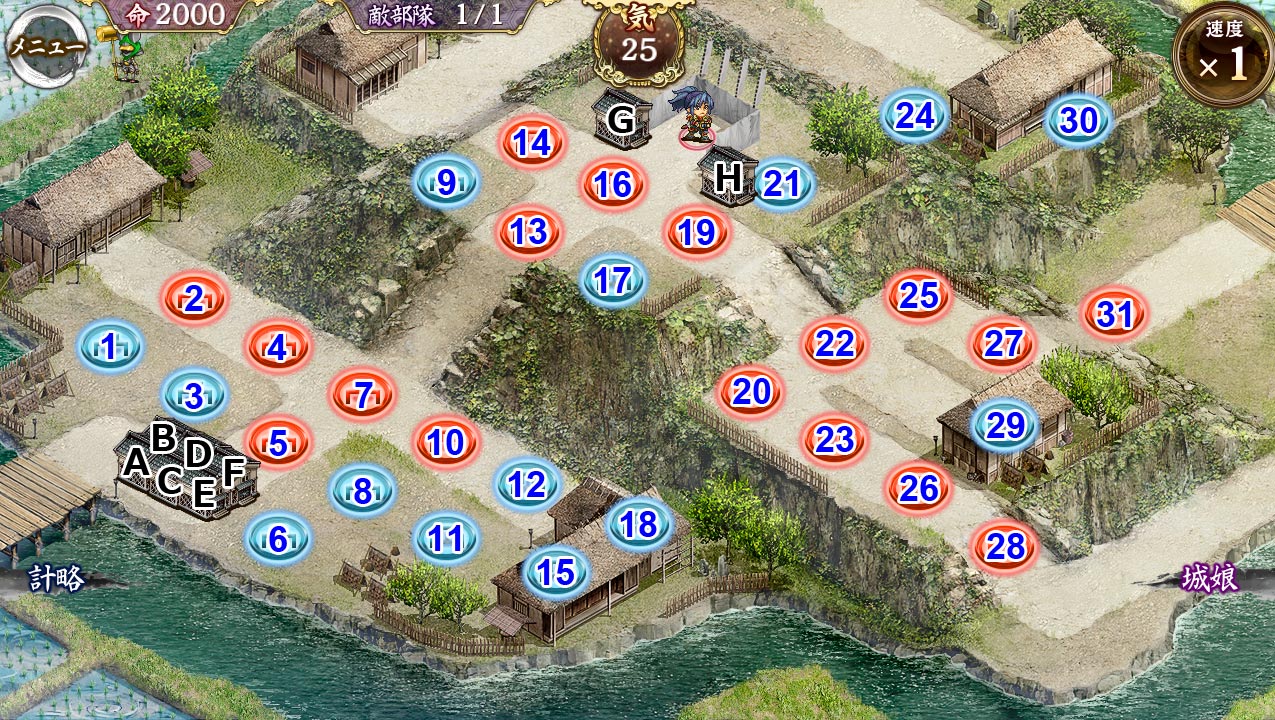 19槍、30鉄砲、21大砲、3鈴、8弓、6弓、17弓、24歌舞。右側は歌舞だけ先に巨大化して後は左に置いた3匹を優先させていったら全蔵&殿無傷で行けた。 --