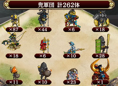 初手21甲府、13絢爛大阪から即巨大化3回、でなんとかなった(脳筋)。あとは17槍、20盾、18投剣(or鞭)、14槍、27刀、8石弓。黒田は4w中に甲府で爆弾処理しつつ削っておいて、5w開始直後に割ってタイマンしたら楽でした。 --