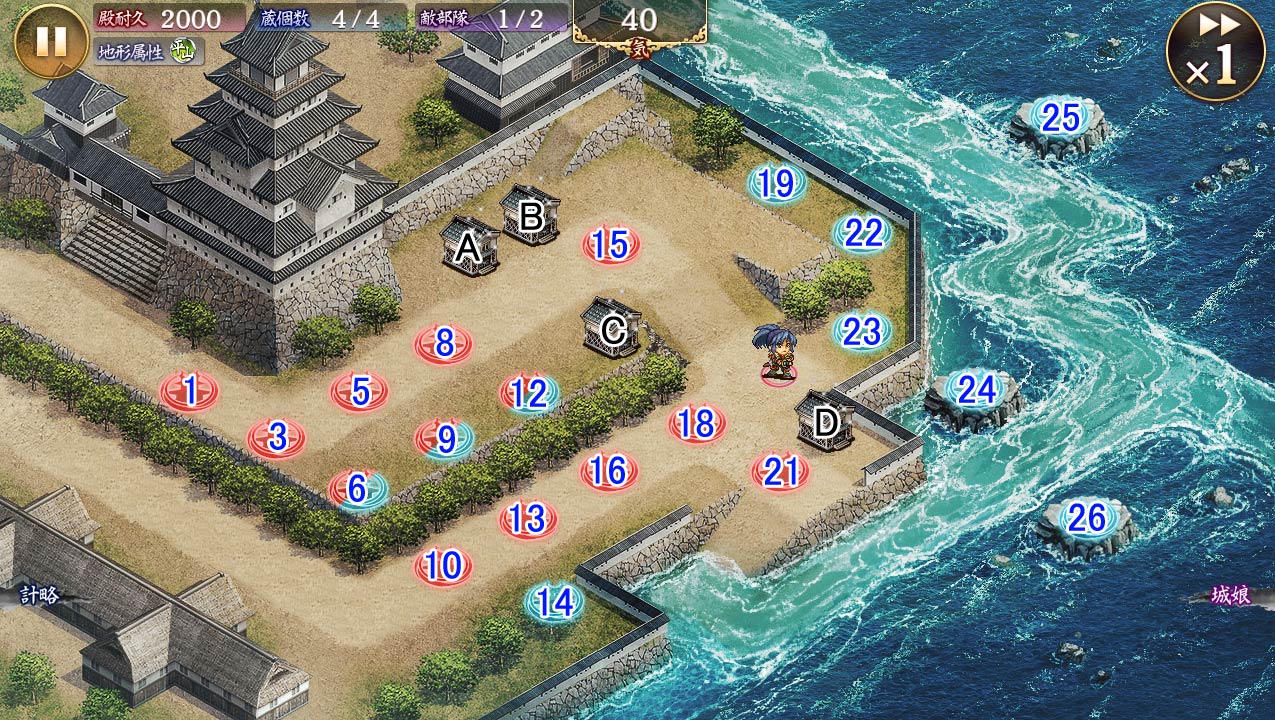| 今回登場する敵城娘は、以下の特技効果を発動しています。 [夏]唐津城:自身の攻撃速度が20%上昇します。 [夏]島原城:自身の攻撃を30%上昇し、全ての敵軍ユニットの攻撃速度を25%上昇します。 [夏]丹波亀山城:自身の攻撃速度が25%上昇します。 |