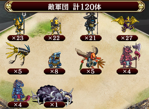 難戦功。24春日山改、19備中松山、22佐和山、13鳥取改、16岡豊改、28新田金山、21竜王山、23鬼ノ、11毘沙門堂、17牛。攻撃が来なくなったら26大一大万大吉。-4体されるんだったら5体止めればいいじゃないか。試行錯誤の跡が残っているので、竜王山+三蔵法師だと射程が伸びすぎるとか、足止めするんだったら鈍足系要らないとか、改善点がある。 --