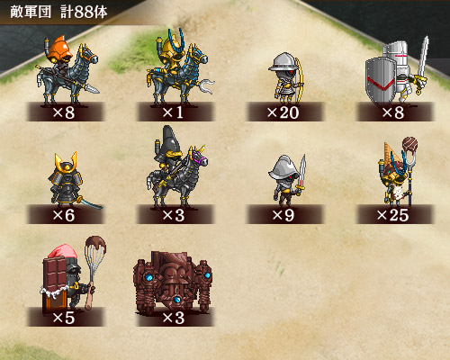 | チョコレートに覆われた一ノ谷形兜は、攻撃を受ける度、回復値が上昇します。(一定値まで効果重複) |